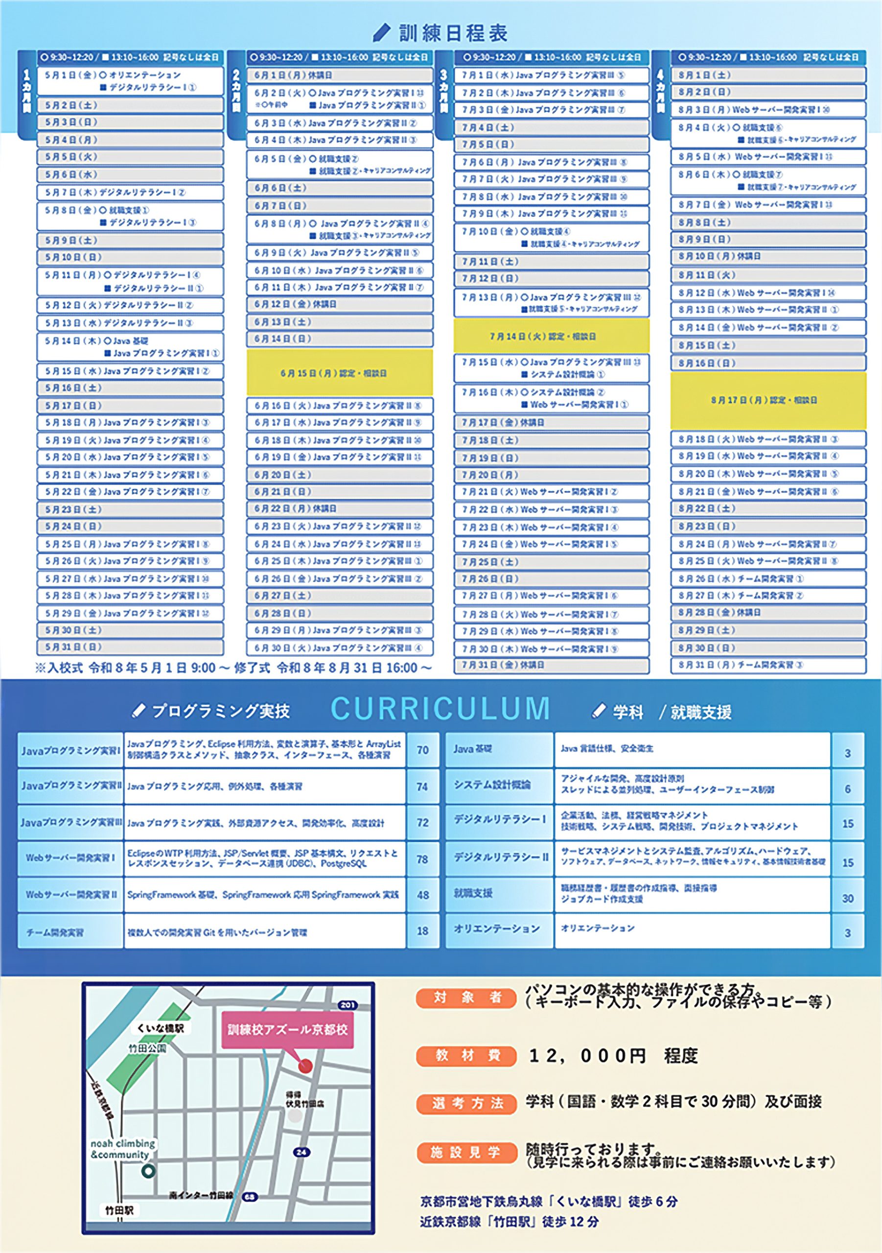 4か月のコースと短いコースなので、必要な内容を抜粋したカリキュラムになっており、初心者でもわかりやすい内容となっております。